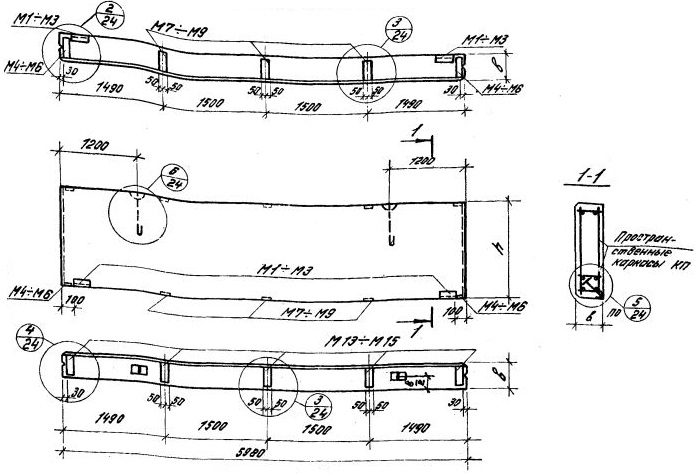 ПС 600.12.30-я-5    Подкарнизная панель-перемычка при ленточном остеклении и при простенках длиной 3 м.